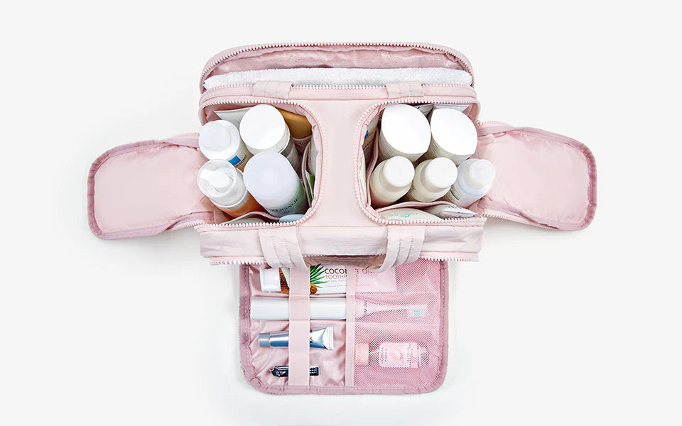 Well-designed internal divisions. Durable elastic bands for securing makeup brushes, toothbrushes, and other small items. Crafted with high-quality, waterproof materials, ensures that wet and dry are seperated.