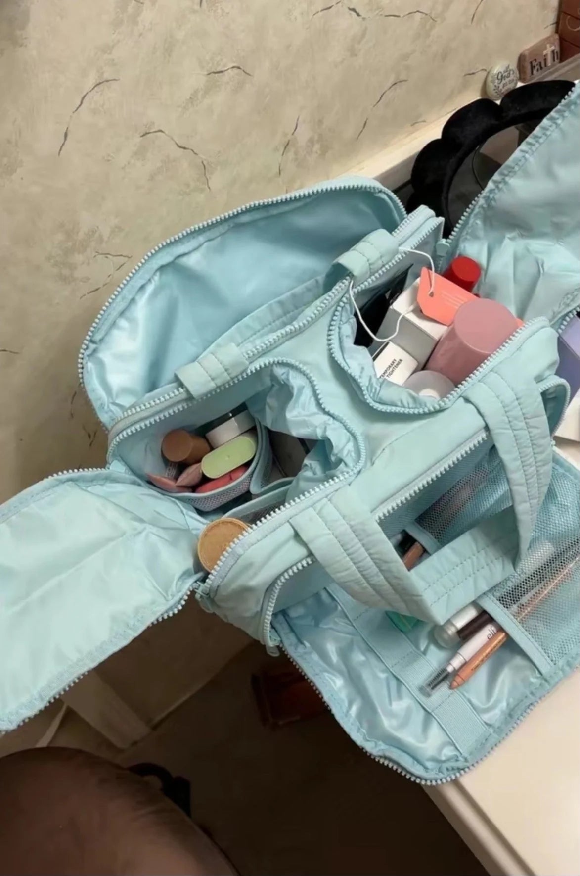 Inspired by the iconic shape of a duffle bag and featuring cloud-inspired elements, our organizer is the epitome of elegance. Whether carried by hand or placed in a suitcase, it adds a touch of sophistication to any setting.
